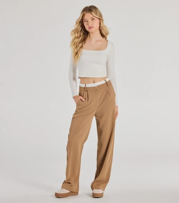 • Contrast-hued waist trim accent